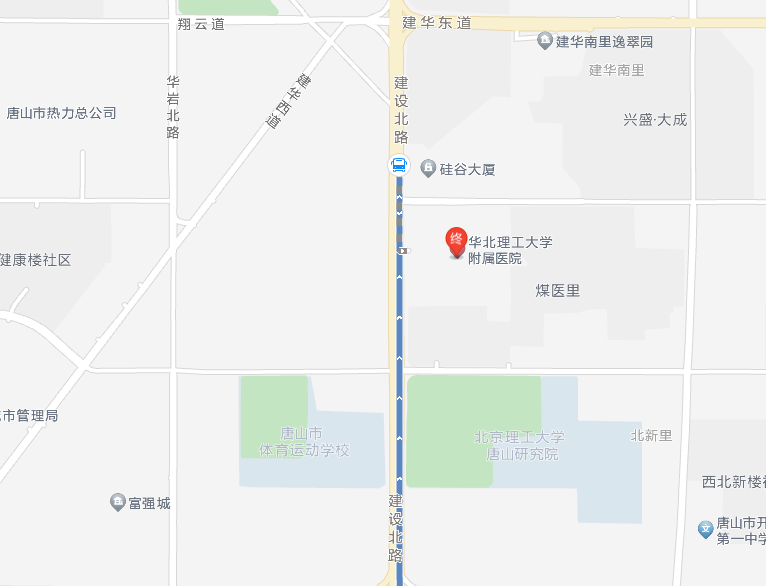 唐山站380米向南步行 到 唐山站東廣場(chǎng)16站乘 26路 (理工大學(xué)北校區(qū)方向) 到 煤醫(yī)道口210米向北步行 到 河北聯(lián)合大學(xué)附屬醫(yī)院