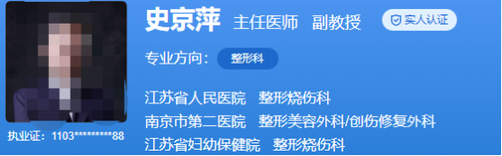 醫(yī)生介紹:史京萍是主任醫(yī)師,副教授,博士,碩士生導(dǎo)師。曾經(jīng)在美國華盛頓大學(xué)、韓國峨山醫(yī)院做過訪問學(xué)者。在整形行業(yè)工作了很多年,臨床經(jīng)驗(yàn)豐富,對于大面積的燒傷救治,各種的軟組織缺損的修復(fù)、胸部整形等,調(diào)節(jié)效果不錯(cuò)。